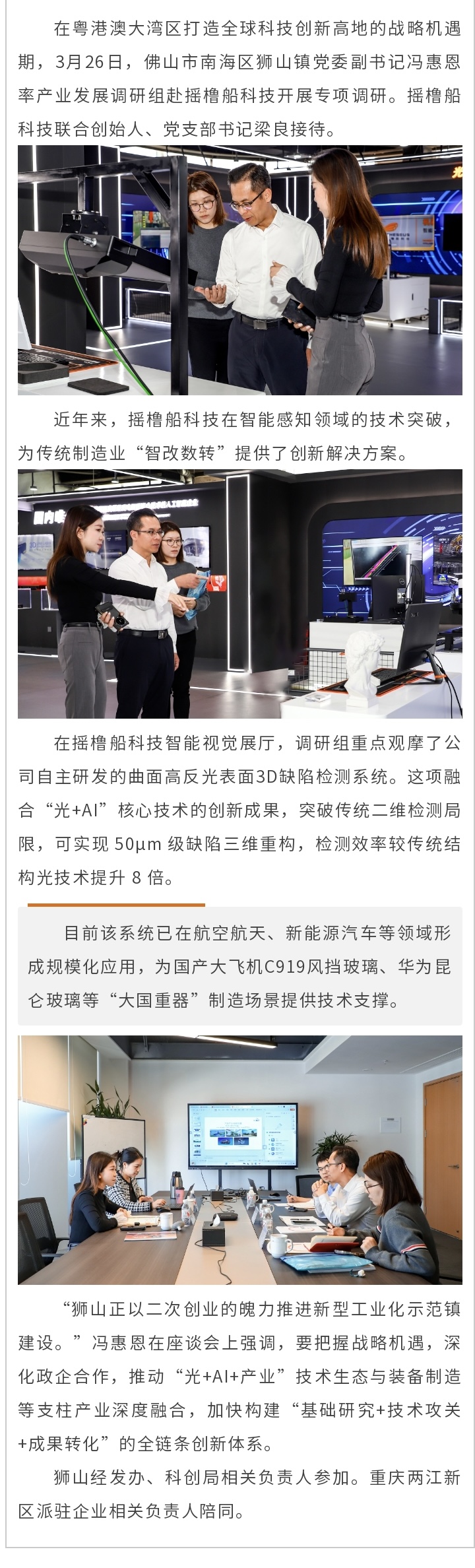 狮山政企联动调研摇橹船 探路新型工业化“智变”