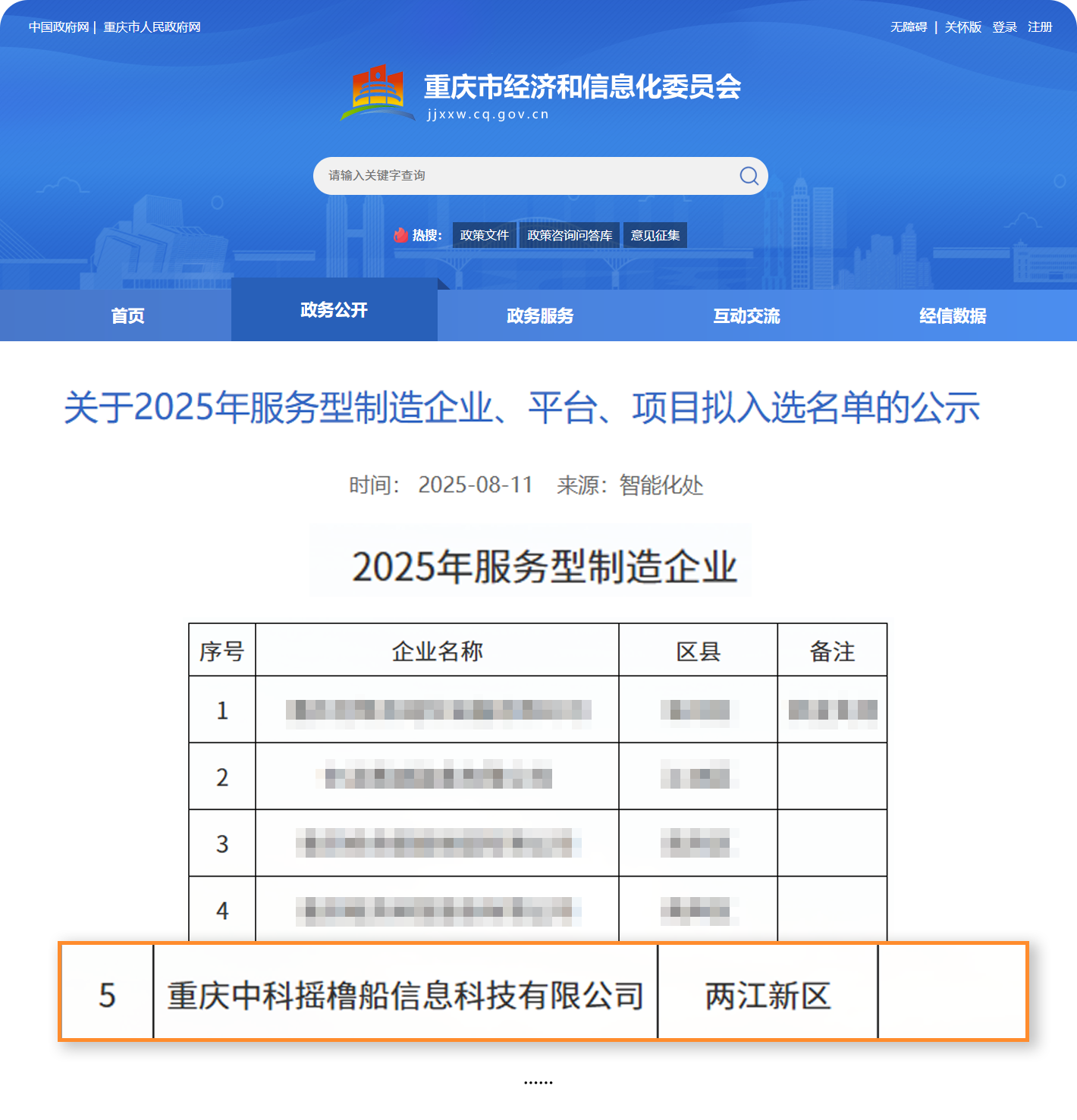 近日,重庆亮出服务型制造领域“示范生”名单,中科摇橹船入选“2025年服务型制造企业”。硬科技+深服务,摇橹船再添一项“省部级”荣誉。